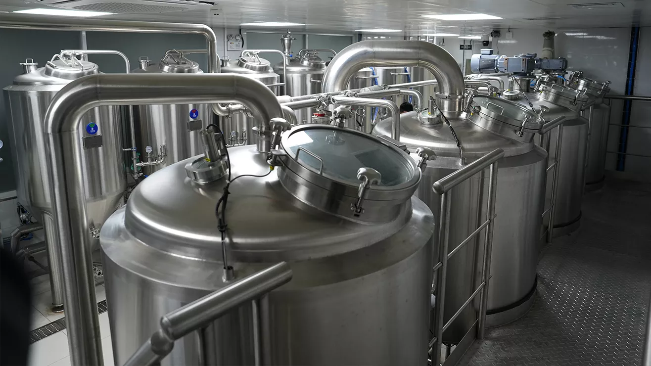 可以制造10余种不同口味的啤酒。整体设备由粉碎系统,加热系统,糖化系统,发酵系统,制冷系统,清洗系统,控制系统等组成。